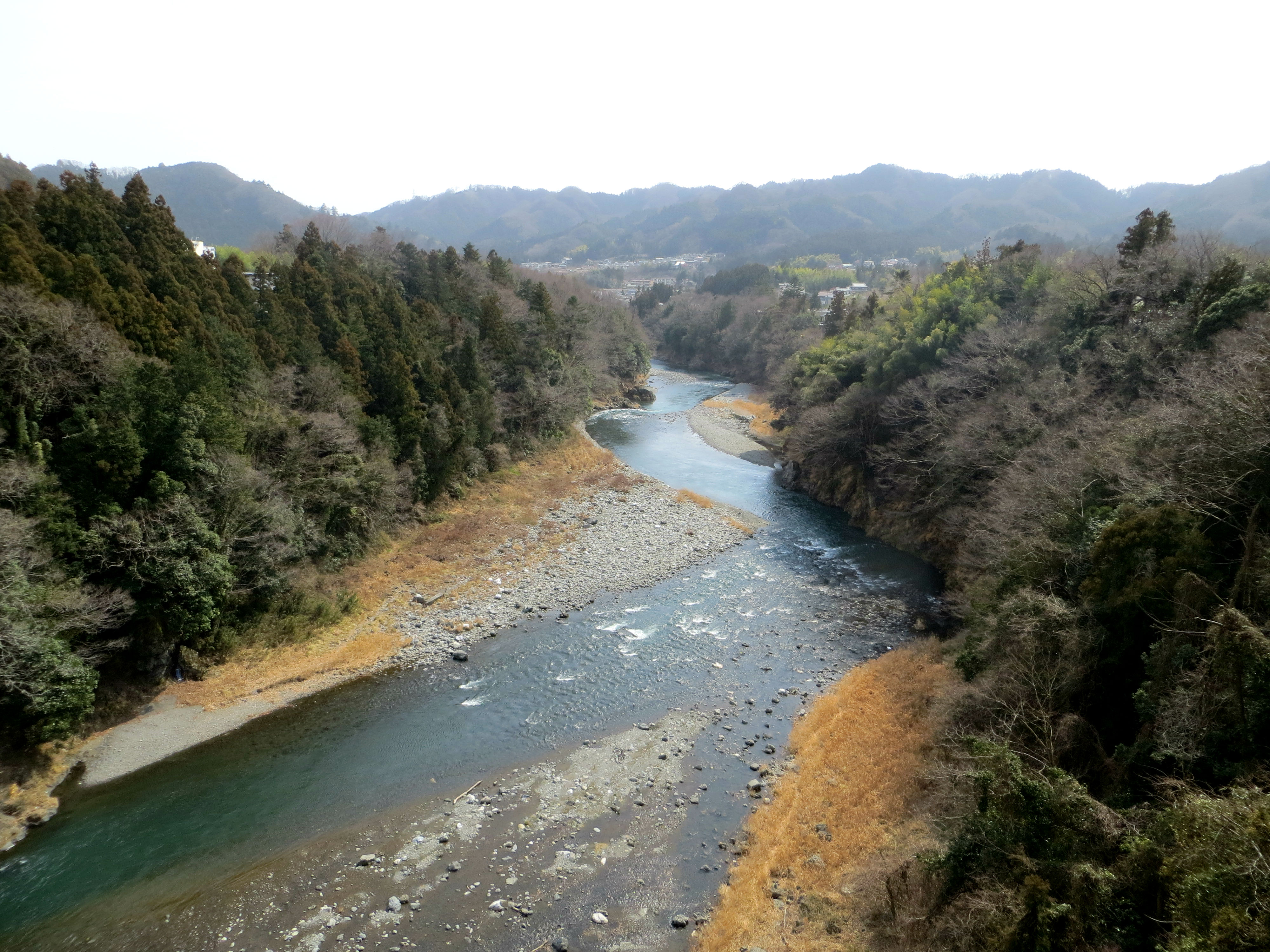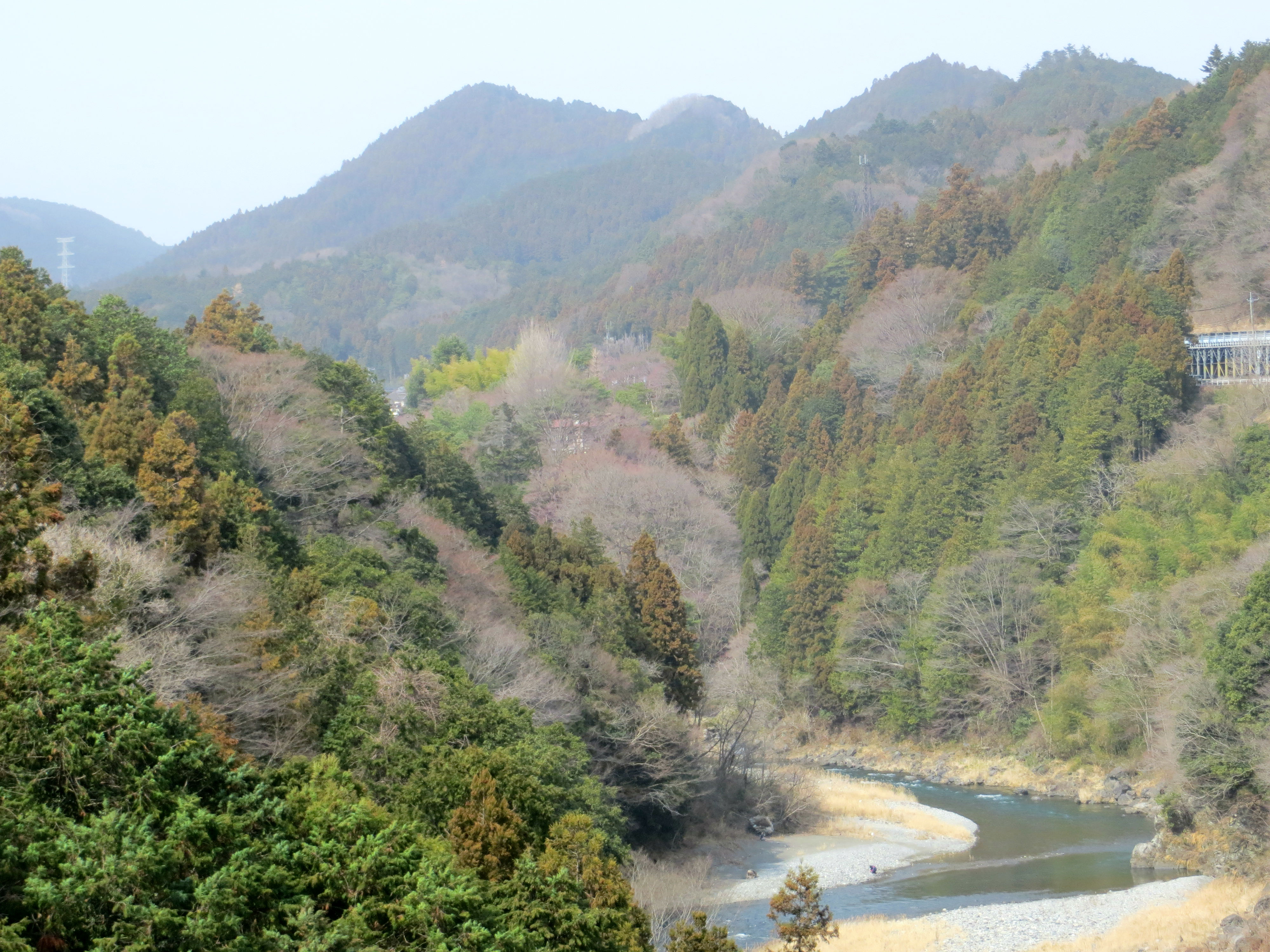 The park itself winds up and down, giving secluded views over the forested mountains and Hinatawada below