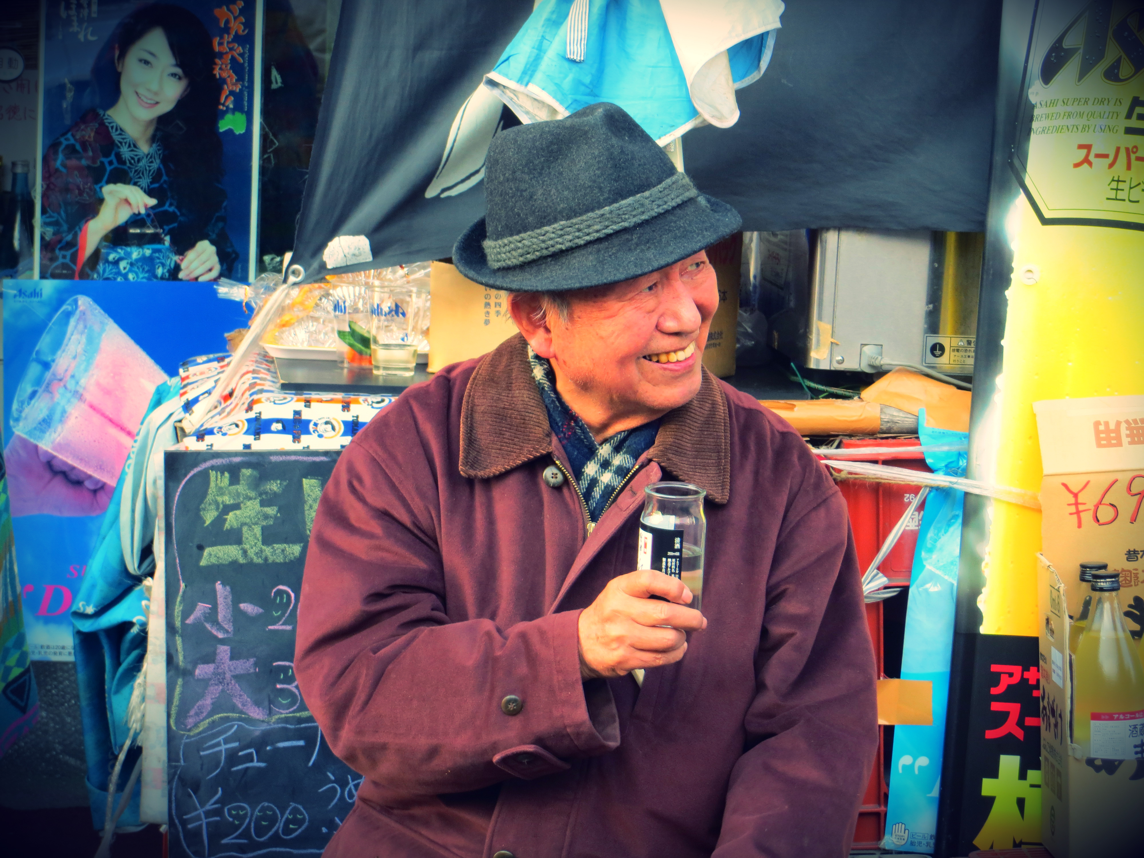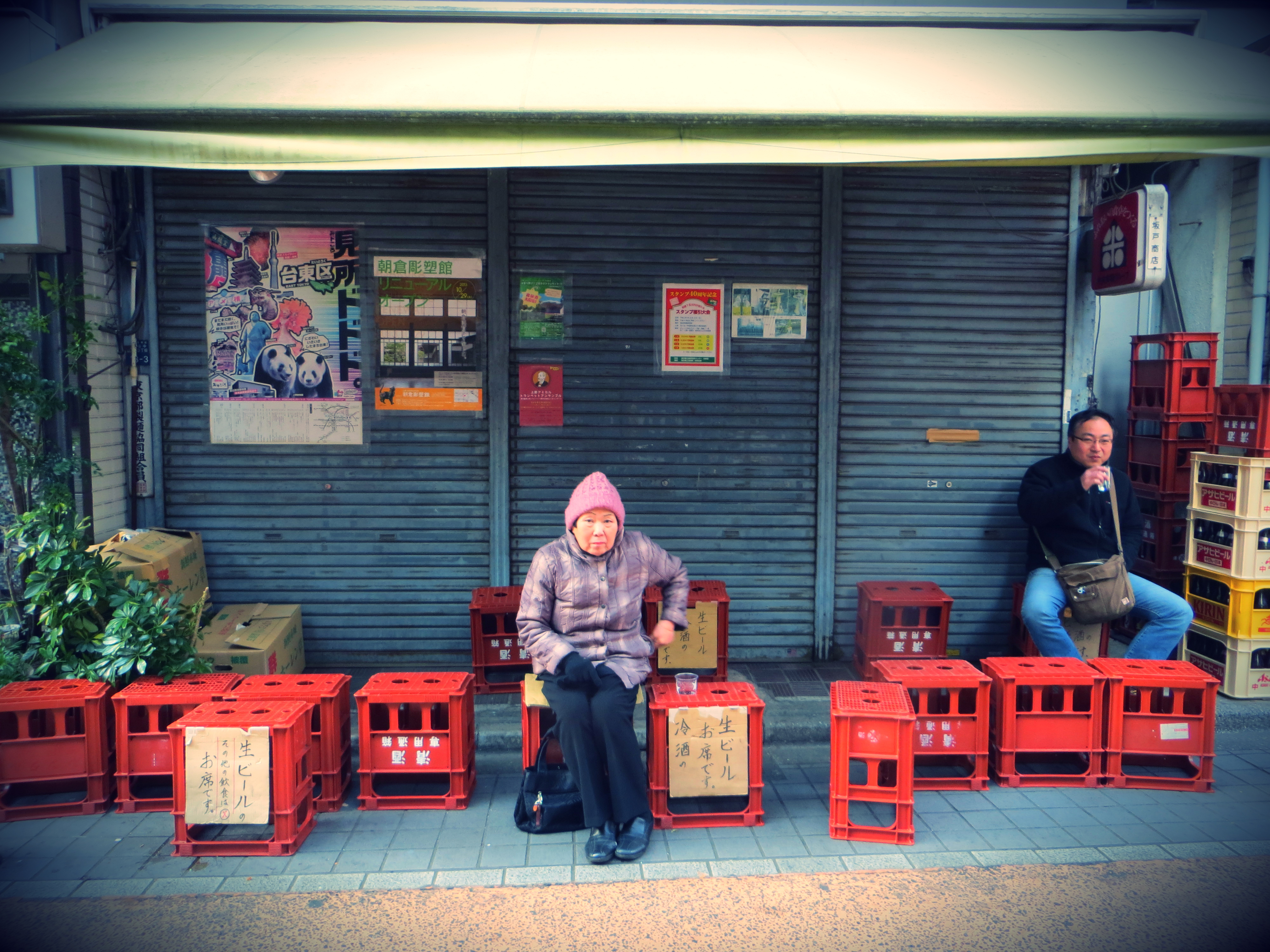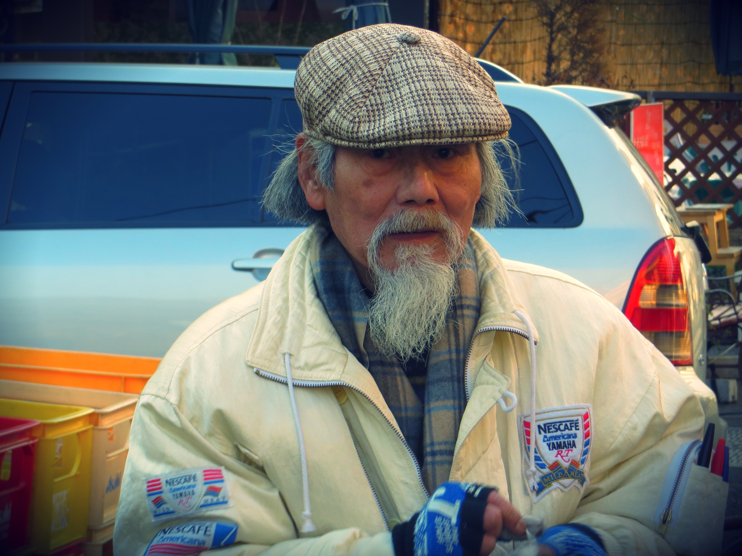As I was walking through the back streets I came across a bunch of old-timers teaching children how to play with Japanese fighting spinning tops, or ‘Kenkagoma Koma’. This guy in particular was great, a piece of dried octopus constantly hanging out of his mouth and a look of deft concentration on his face.