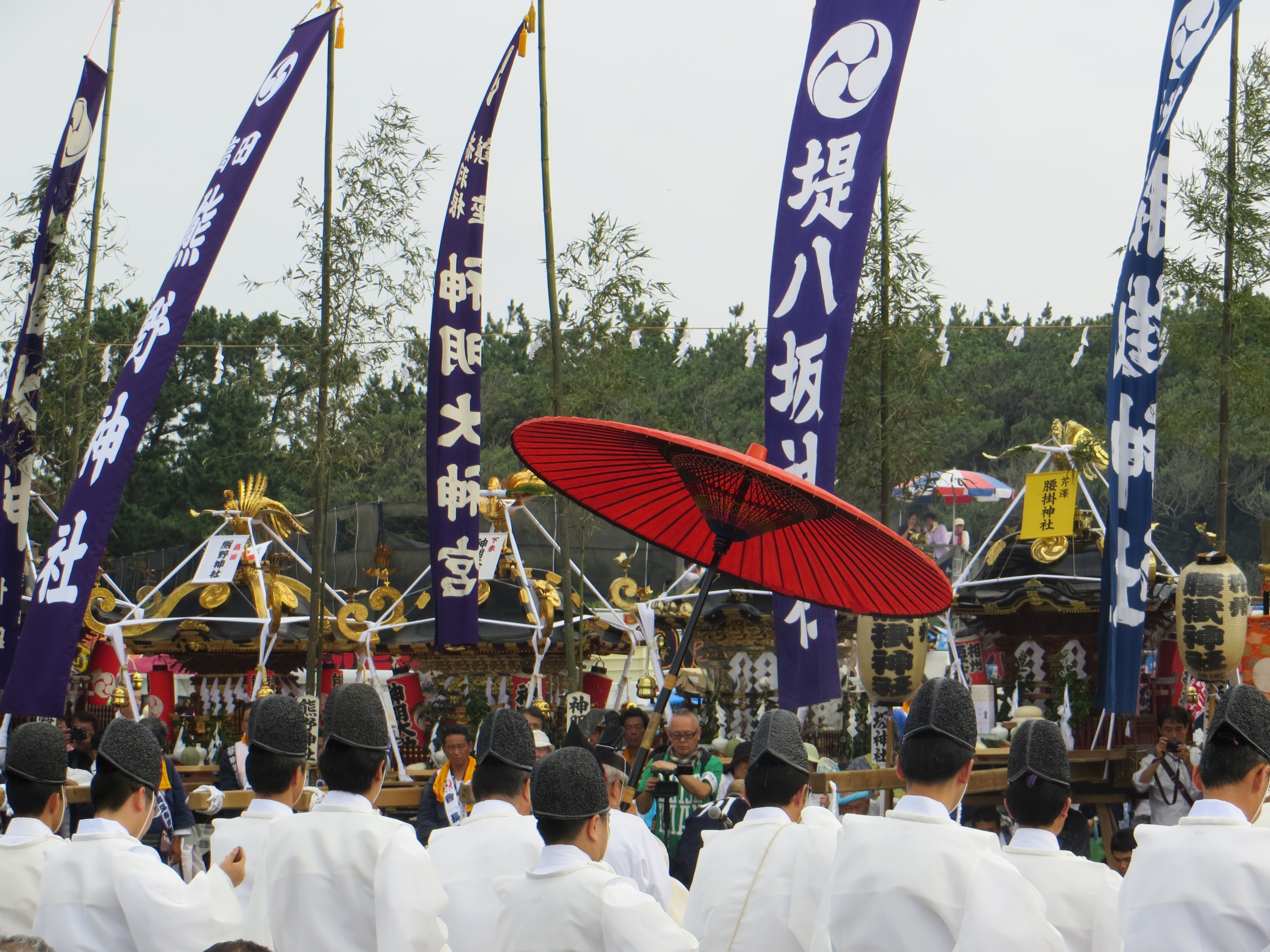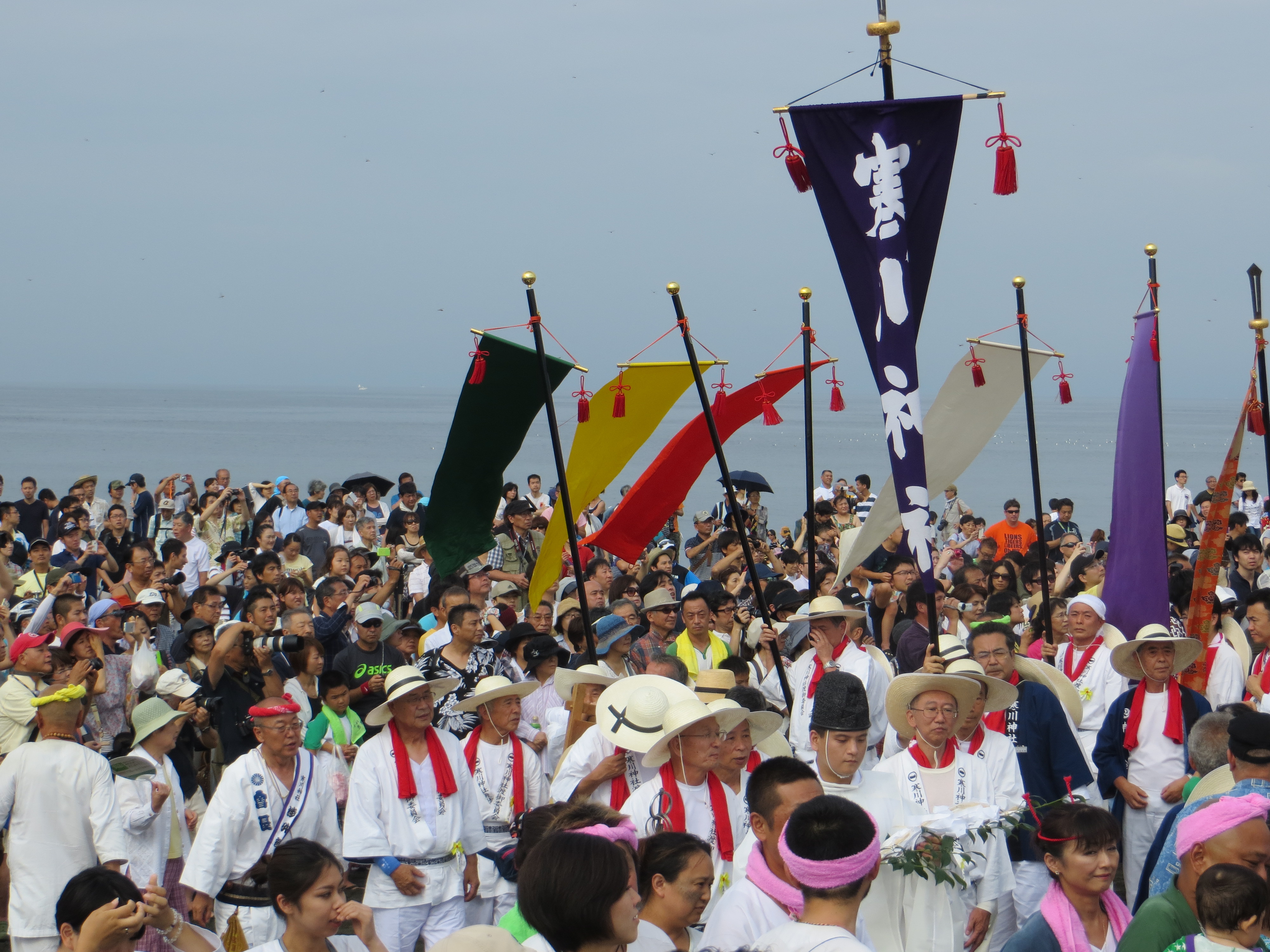 Once a year in July thousands of people gather at sunrise at the fishing port of Chigasaki to join the Hamaorisai Matsuri – one of Japan’s most vivid spectacles. Dating back to back the ninth year of Tempo (1839), this annual festival is believed to have started when the sacred palanquin of Samukawa Shrine was carried away and lost in the Banyu River on the way back from the Kokuhu Festival. The palanquin later reappeared up on Nango Beach in Chigasaki City. Thus ever since, the festival has been held in this place. The “Hama” of Hamaori Festival is believed to mean “Descent of God”.
