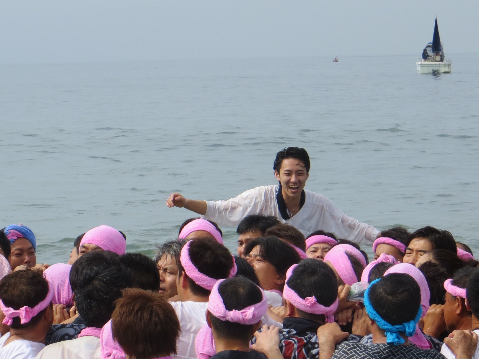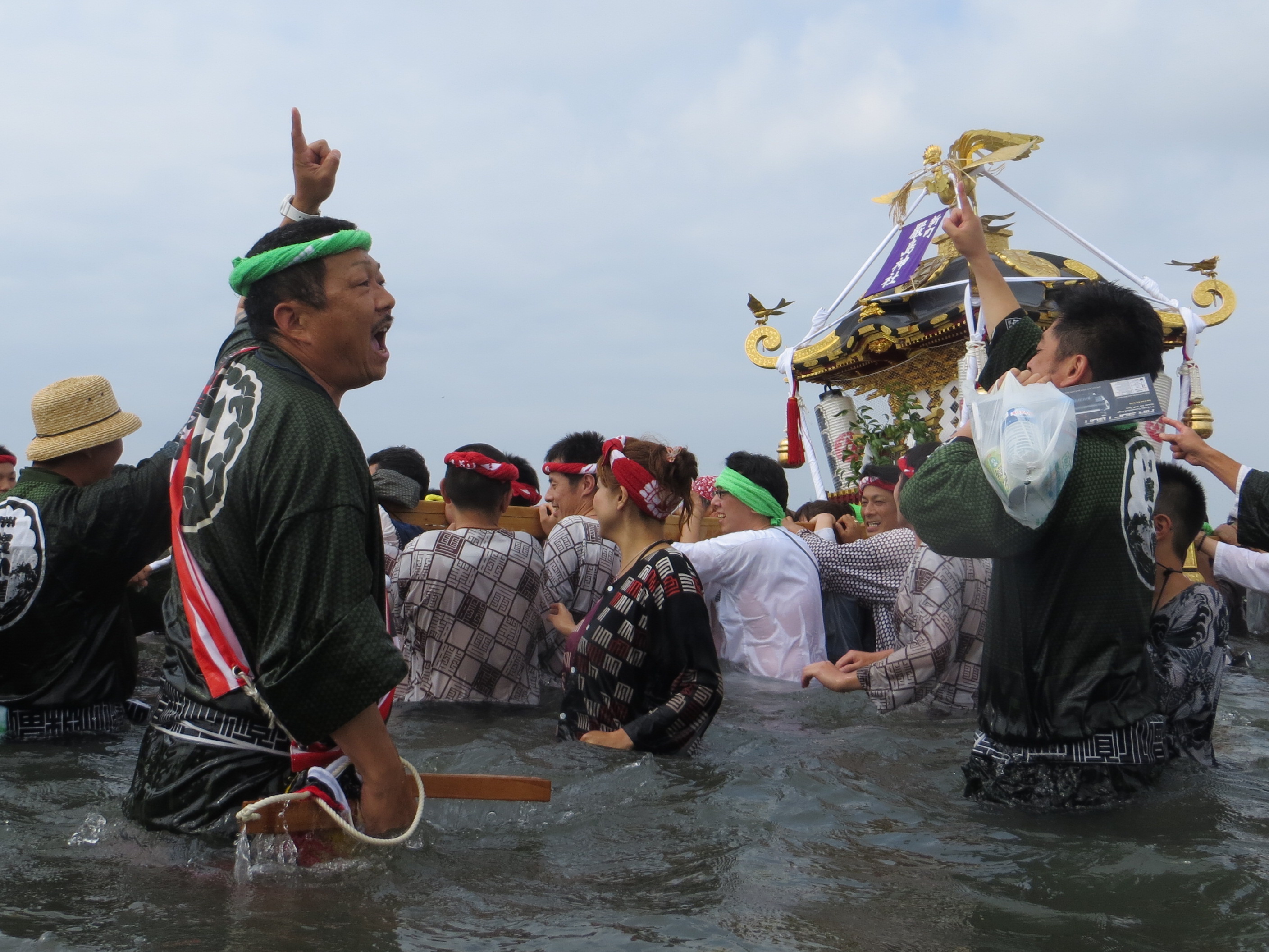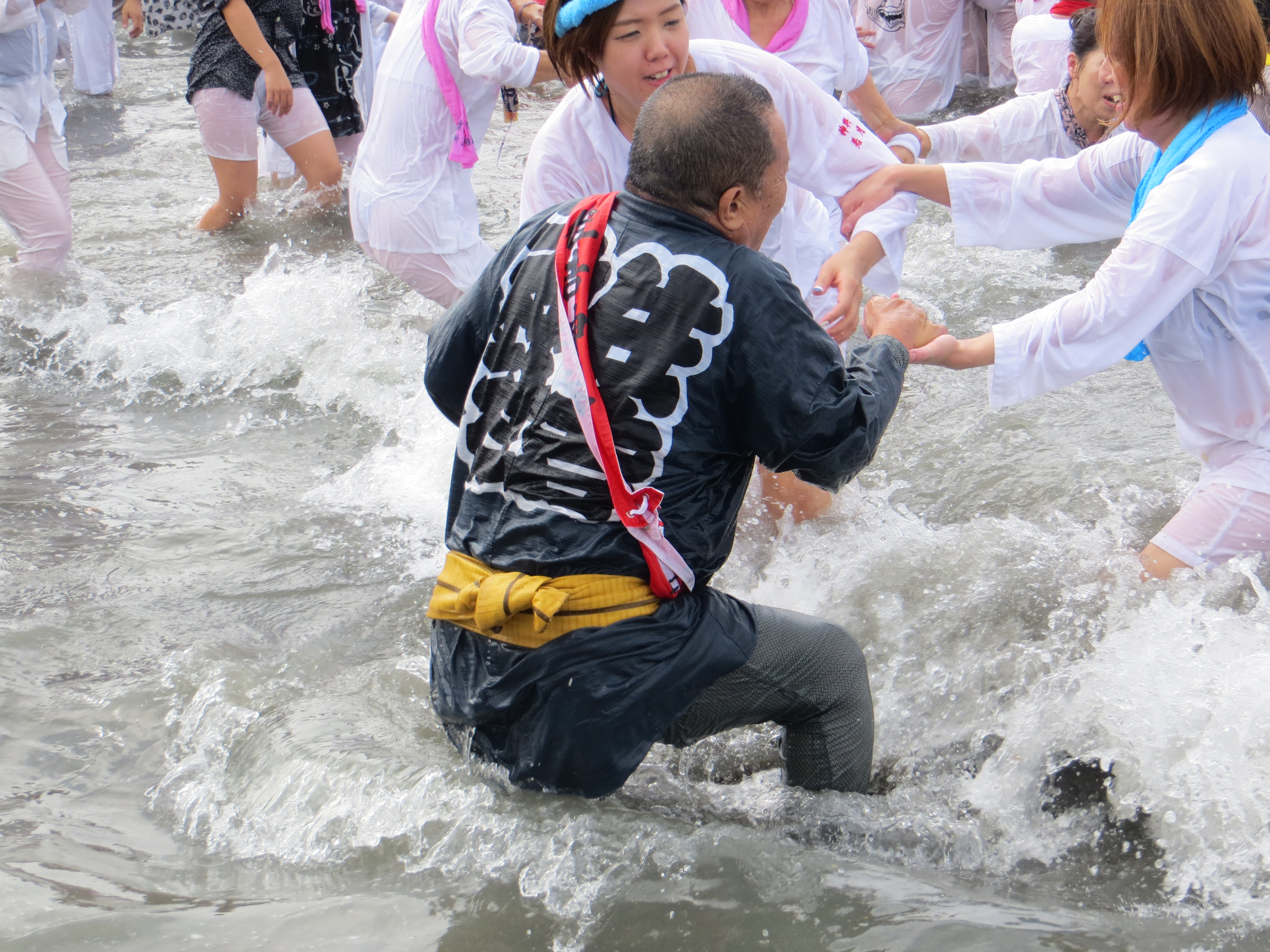 Purification of the sea. Getting wet at the annual Hamaorisai Sea Festival in Chigasaki.