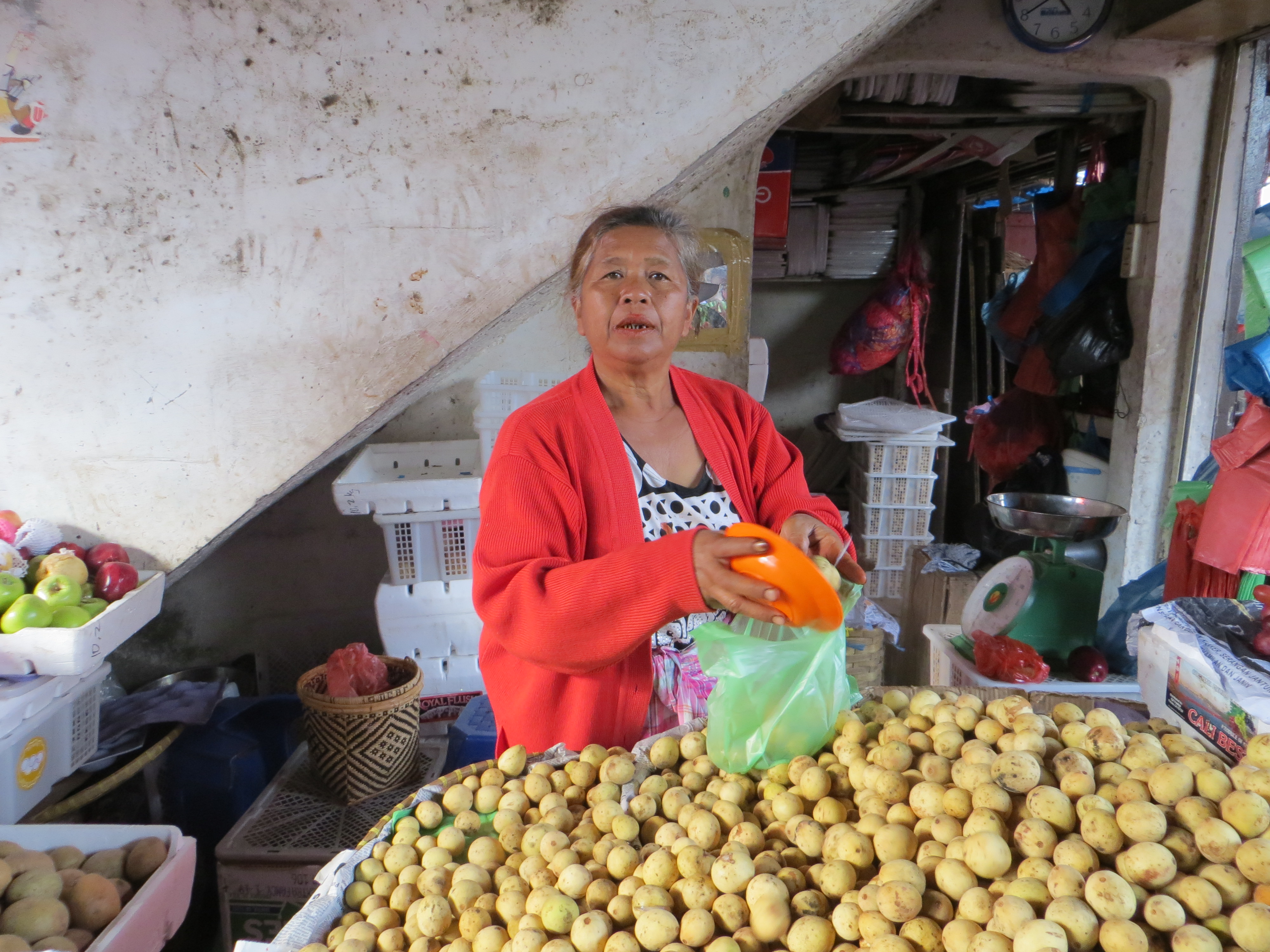 While this lady opted to sell the much less threatening potato. Cauliflower, cabbage, radish, tomatoes and carrots are all sold in abundance.