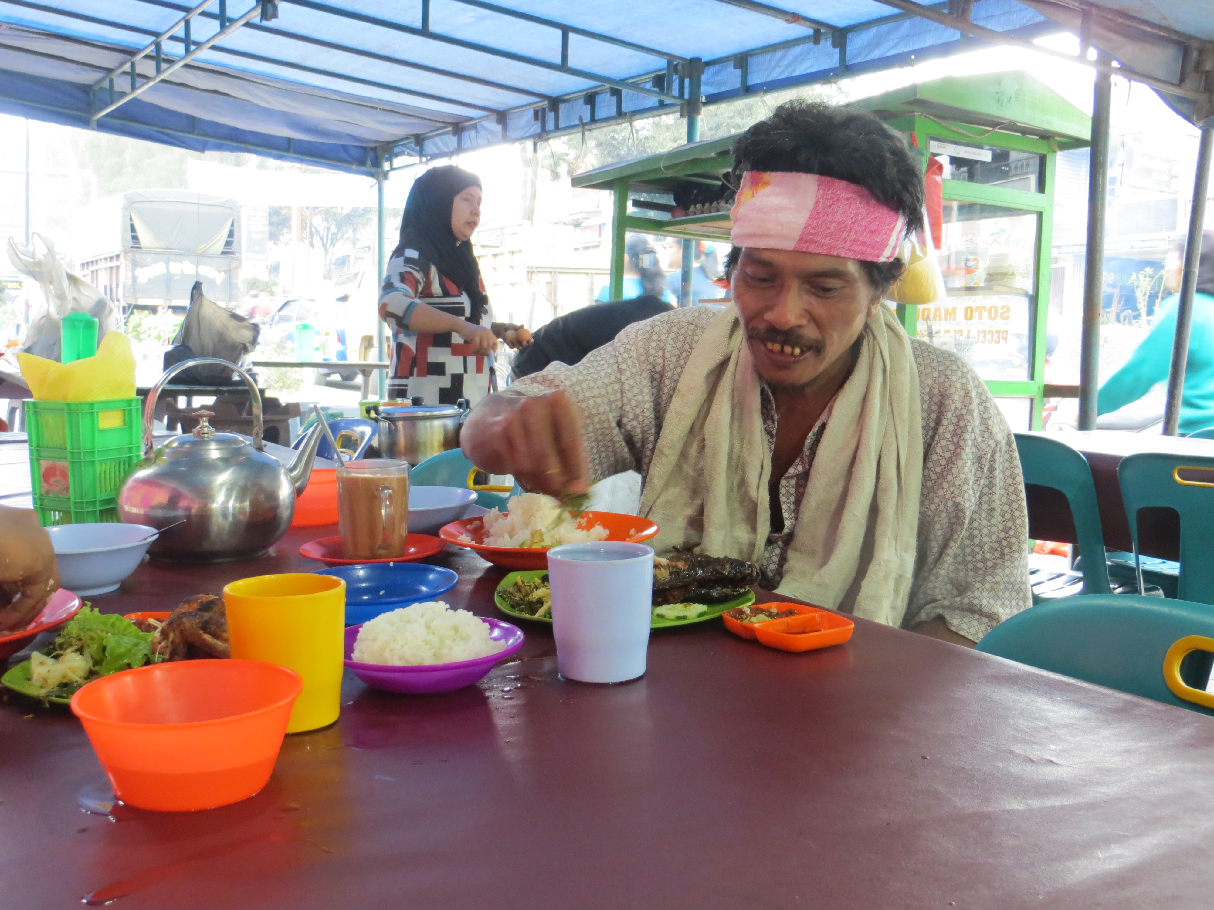 Pretty much a standard Indonesian meal: grilled chicken or fish, rice, a soup made from stock. Not forgetting a spicy sambal dip. What it lacked in appearance it made up for in taste.