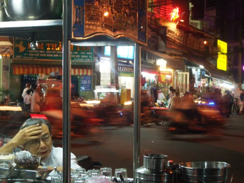 Unhappy with his dinner – or simply life in general – a Vietnamese man contemplates suicide on the streets of Saigon, Vietnam.