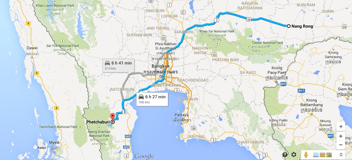 Today I travelled 500km west to east – from Phetchaburi near the Myanmar border to Nang Rong beside Cambodia. It was a slog: 11 hours in total using five different forms of transport, but the end price was ridiculously cheap.