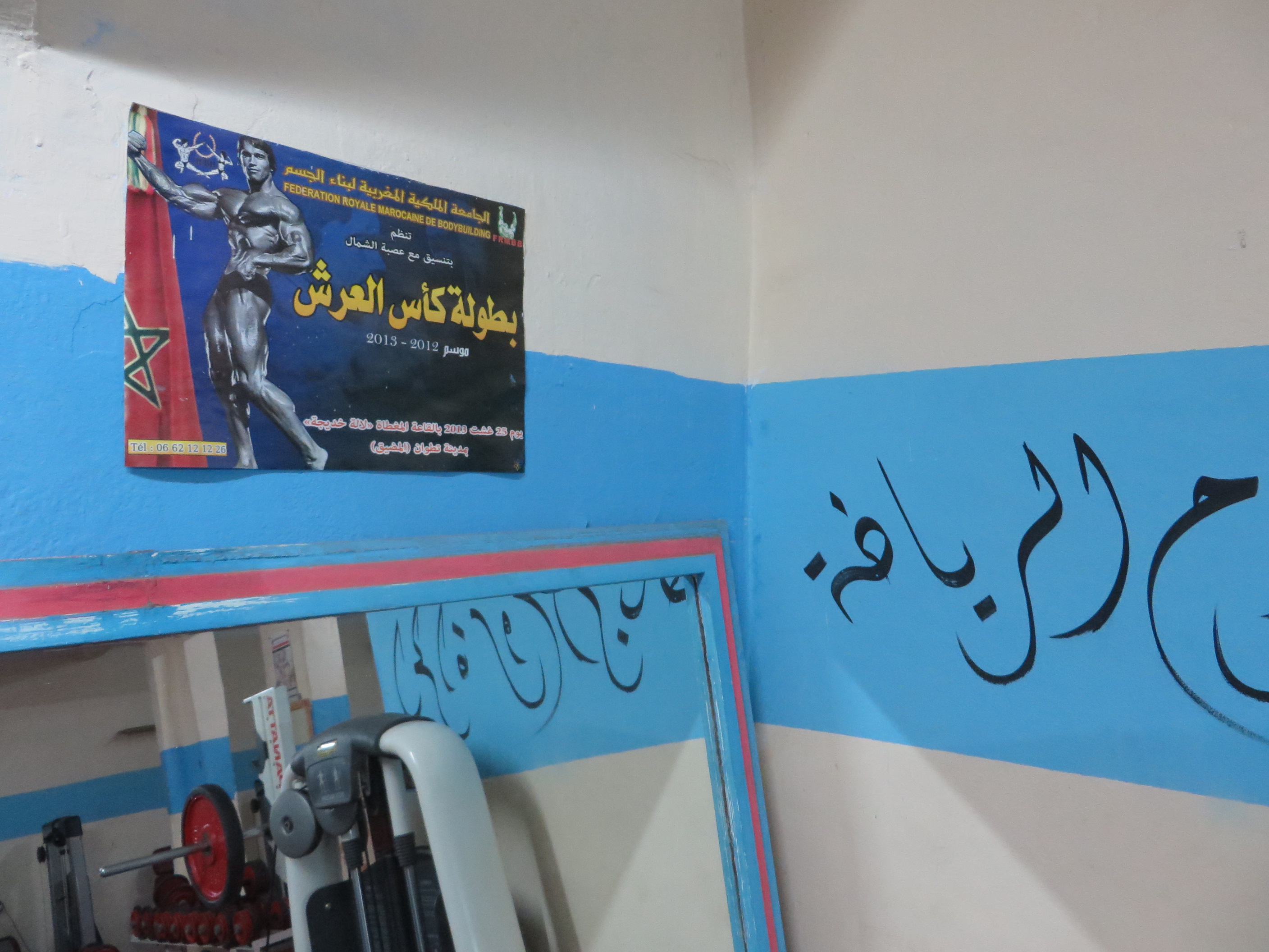 We arrived at an old building with a huge sundamaged picture of a bodybuilder plastered on the outside and load of arabic writing. I approached the guys inside and they initially didn’t wanna let me in but they discussed it amongst themselves and told me I could pay a one-off fee of 25 dirham (£1.70) for a session. I knew that it cost Moroccan guys 100 dirham (£6.75) to use this gym for the entire month so tried to bargain down. They weren’t having any of it, and I even tried to call their bluff by walking away but no luck. So I said sod it and paid up. By this stage I was curious how the inside looked anyway.