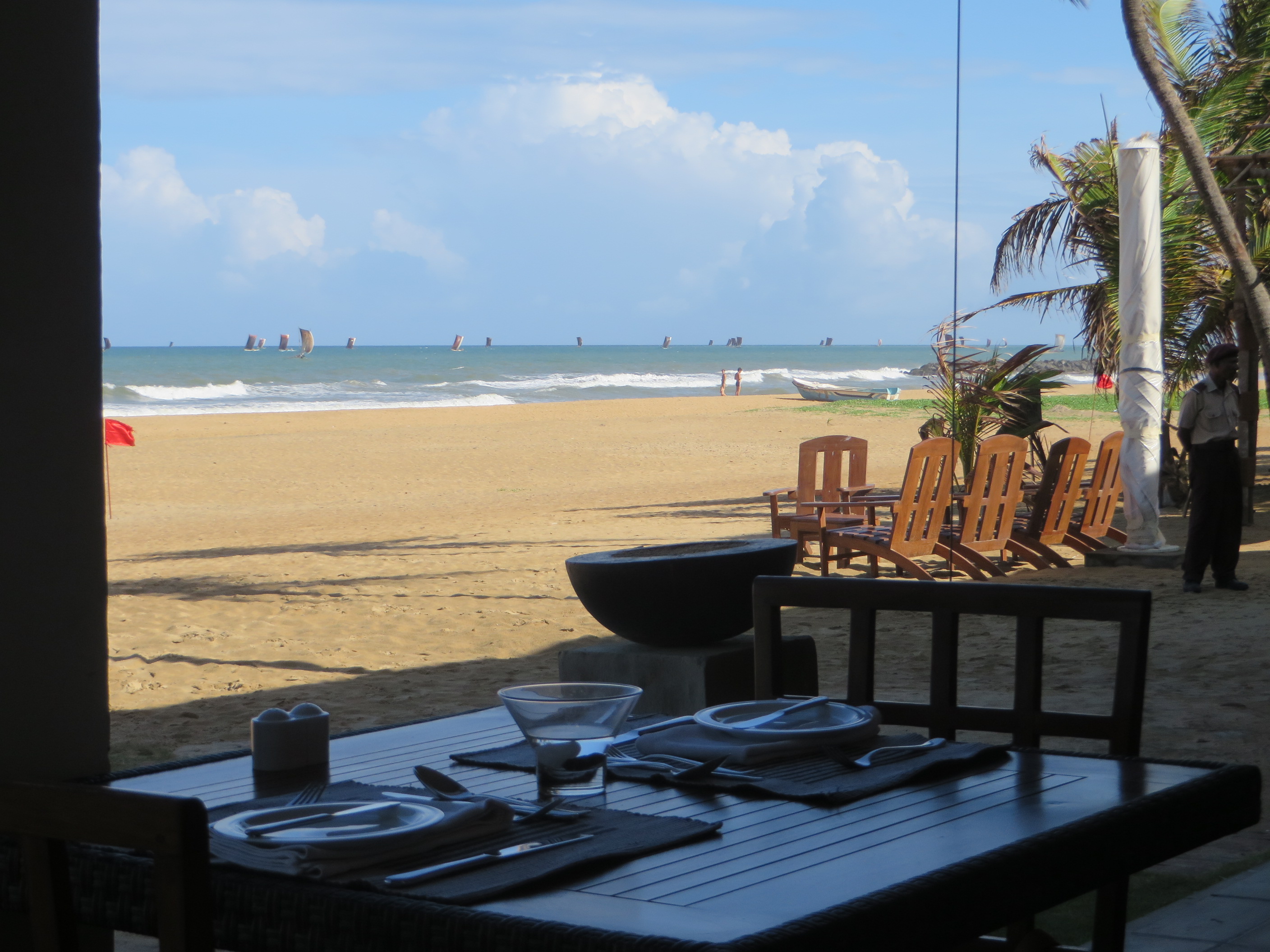 The setting for breakfast is spectacular with the boats bobbing up and down in the distance. The food is equally as inviting, with lots of Sri Lankan staples on offer. I’m sure the western choices were top-notch but I did not come all the way to Sri Lanka to eat cereal and toast. My first Sri Lankan meal was egg hoppers with fish curry and chili sambal, with coconut milk rice on the side. Hoppers are famous all over Sri Lanka and I was excited about trying them. The chef prepared them in front of me, expertly pouring the thin rice mixture into a skillet then cracking an egg. After breakfast I checked out the rooftop gym overlooking the sea. It has an amazing view, aircon and modern equipment. Those of you who read my blog know I usually prefer going to funny/crappy local gyms when I am away, but I wasn’t about to complain.