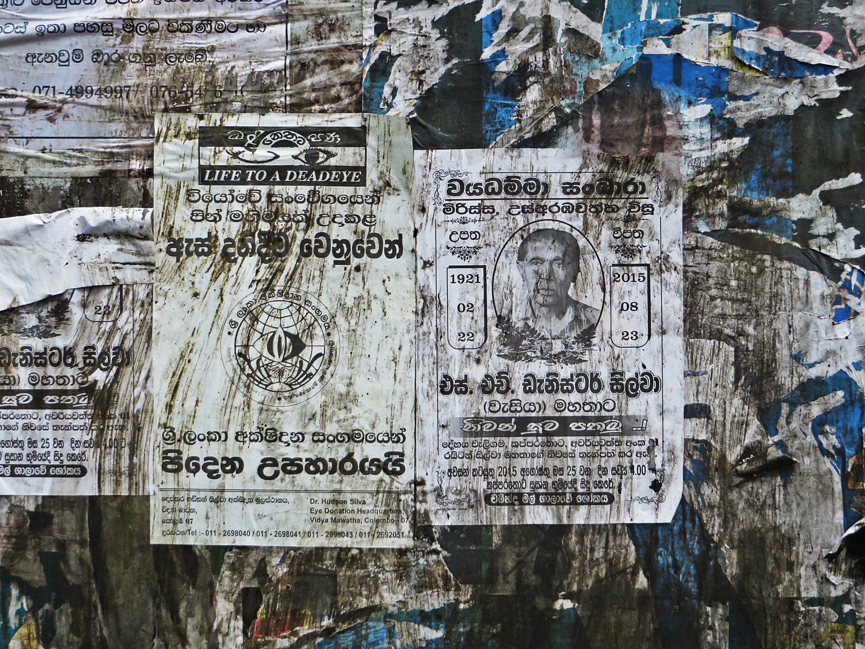 One thing that surprised me on my recent trip to Sri Lanka was the vast amount of Death Notices I saw while walking around small villages. These notes are a Sri Lankan tradition, originally introduced as a way for local people to learn about recent deaths in the area, much like obituary notices in today’s western newspapers. In some rural areas, telephone and digital communications have only recently been introduced, so these physical notices proved to be a useful asset.