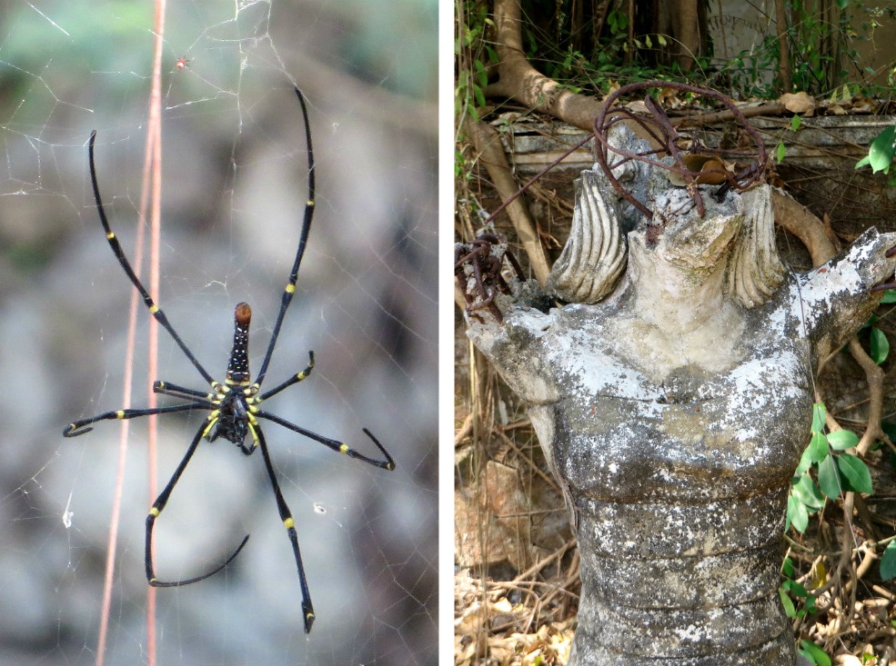 I entered the park through the old front gate where the ticket offices used to be. A security guard was there but didn’t seem phased by me going in to have a look. It turns out Taman Festival Park was in the final stages of completion before the project was abandoned. The grounds are absolutely massive – with a movie theatre, a fake volcano and all sorts of outlying buildings which are now overgrown with vines and weird creatures. (The size of the spiders and hornets inside this place have to be seen to be believed.) In the heart of the park is the remains of a crocodile pit, and rumour has it when the park was dissolved, the owners left the crocodiles there to become wild. There’s an urban legend that the crocodiles became cannibals and ate humans, hence another reason why the Balinese won’t go near the place.