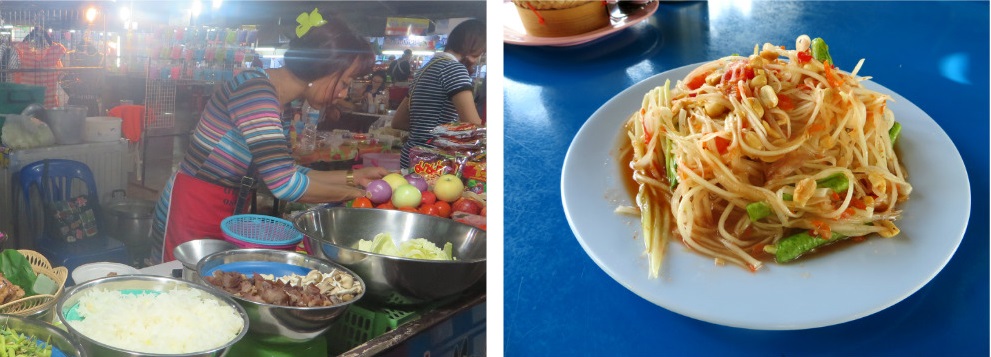 Right now I’m in Thailand, bumming about in a small town called Phetchaburi which is about 80km from the Myanmar border. It’s a place I’ve visited before, but I chose to come back mainly because of the guesthouse I’m staying in. (I wrote about my last visit here, including details of this cute little guesthouse in case you wanna come). My room is amazing and costs £9 a night, and I’m only spending about £3 a day on food, with meals costing about 60p. Most nights I have to ‘cycle for my dinner’ which means I don’t really know where I will eat. I just get on my bike and ride around town until I see some people selling stuff at the side of the road. Phetchaburi has no ‘restaurants’ in the traditional sense: at the very most you will get a few plastic chairs on the pavement but in the most part it is just street carts or local vendors at the night market. The food is amazing, especially the som tam (papaya salad). There are no English signs. There are no tourists. There is no public transport. No one speaks English. As far as authentic Thai towns go, it’s pretty much perfect.