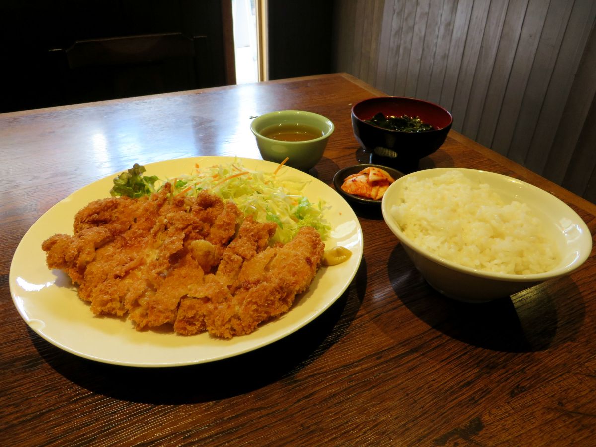 tsukishima-22 ← Previous Next → Chicken-katsu lunch at a mom-and-pop style restaurant. Basically breaded chicken fillet with rice, soup and kimchi.