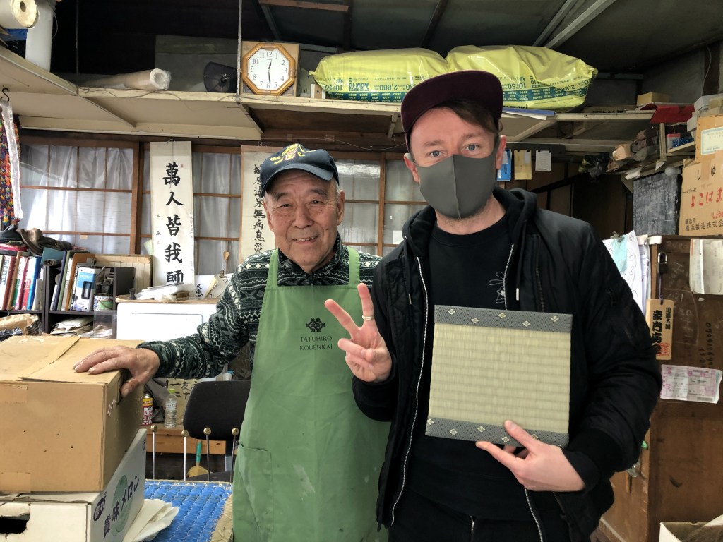 He wanted a pic of us with his own camera, then we snapped one of our own. He gave me a present – a pretty large and random tatami square! I’m not sure what I’m gonna do with it, but I reckon it’d be handy to place in the center of the dining table if we ever need to put a hotpot down on it.
