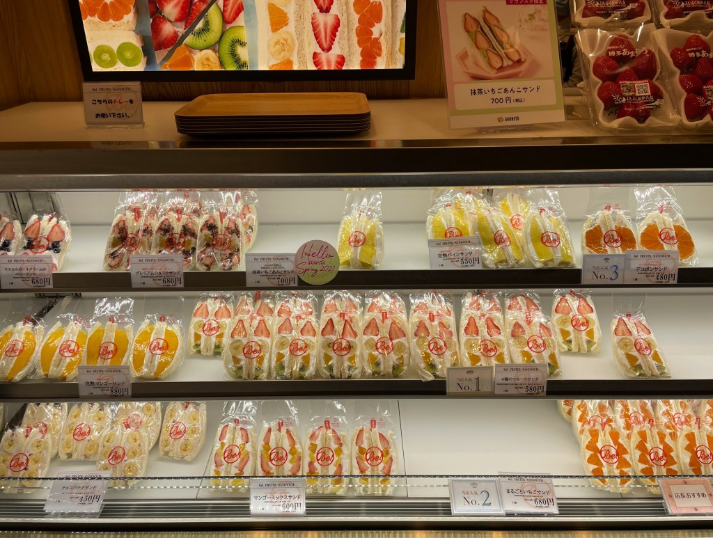 While this shop was selling them too – but inside sandwiches! Fruit sandwiches are a dessert treat in Japan, filled with whipped cream.
