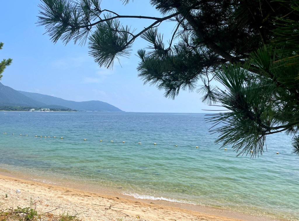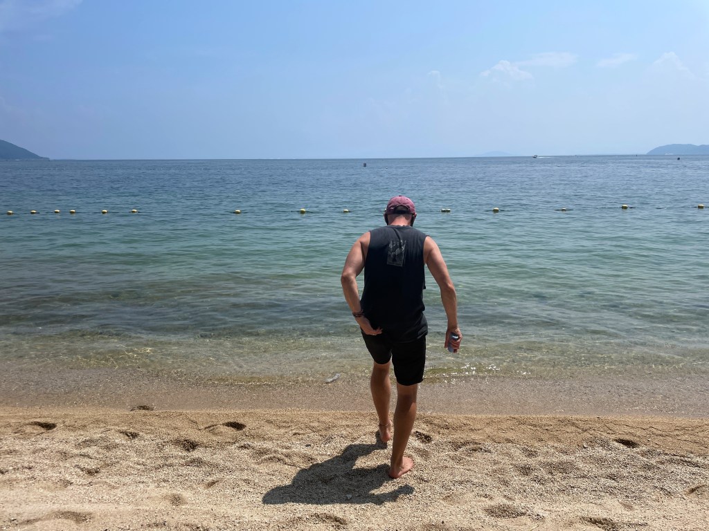 Here I am looking like an idiot at Lake Biwa in neighboring Shiga prefecture. It was only about 40 minutes from Kyoto and the train ride there was nice. We found a secluded spot to swim and I tried my best to walk on the super hot shingle/sand.