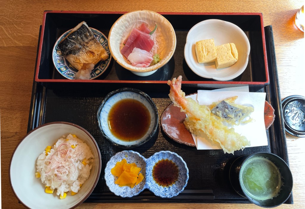 A nice lunch set in Ebisu with some grilled fish, sashimi and tempura.