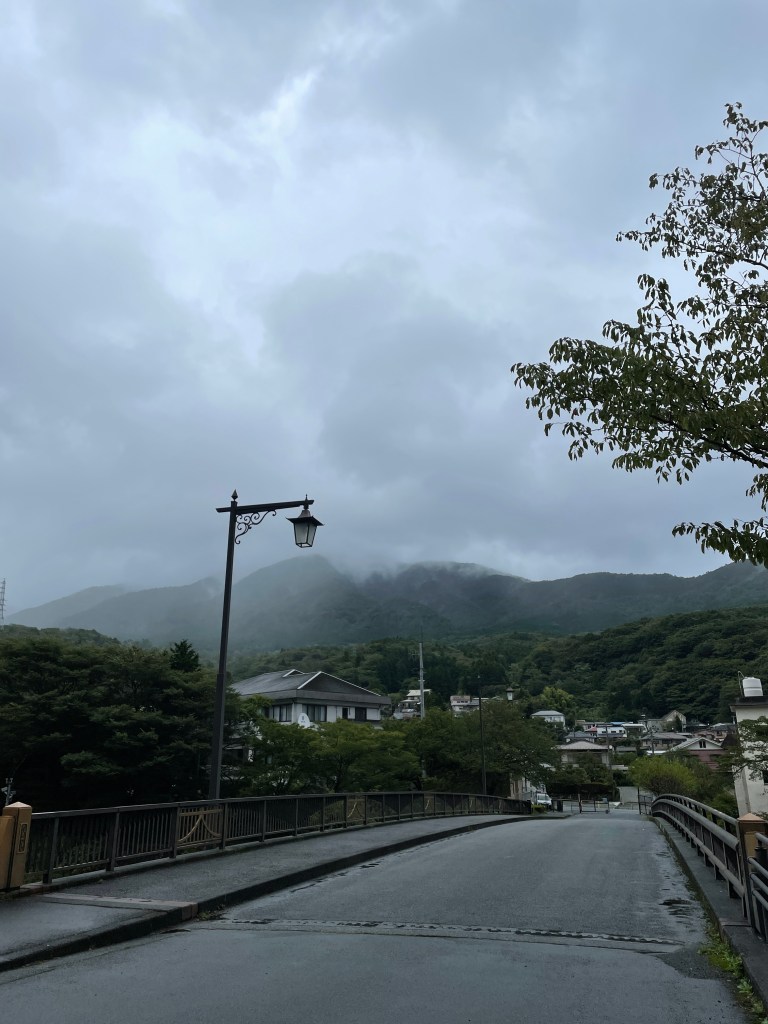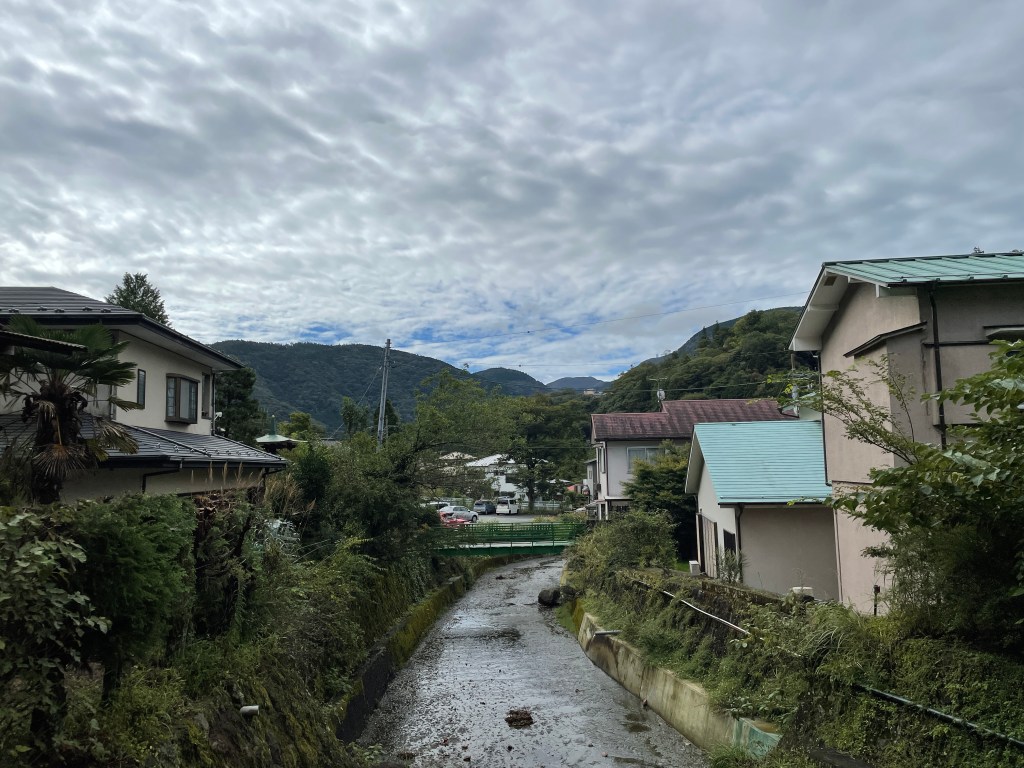 東京のアパートを出た頃はちょうど台風が襲ってくるとこでしたが、小田原駅に到着した時には台風の気配が全くなく、雨もほとんど降っていませんでした。嵐の前線が神奈川県を通過していたのです。駅の近くで待機していた送迎用のシャトルバスに乗り、くねくねした道を通って山奥にあるホテルへ向かいました。