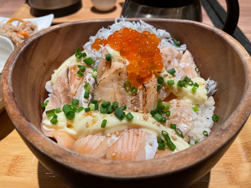 As well as ochazuke – a simple dish where you pour hot stock or tea over rice. This one was topped with salmon.