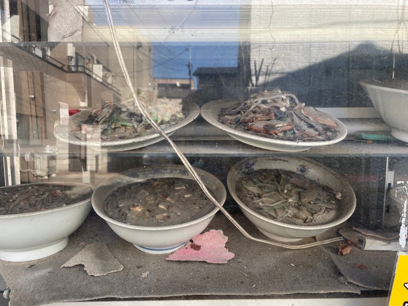 Some of the fake plastic food was still inside – goodness knows how long this place has been in disrepair!