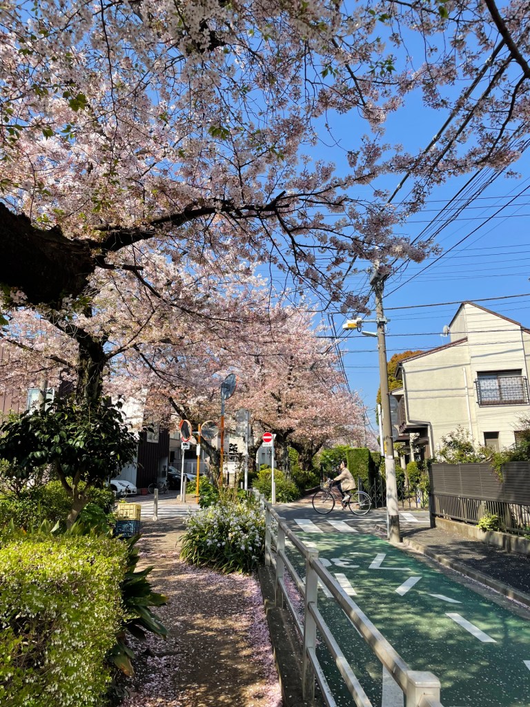 In Tokyo, the welcome switch from winter to spring starts around mid-March with the arrival of warmer weather. This time of year is also synonymous with the cherry blossoms, and so we enjoyed the first sakura of the season by cycling around our neighbourhood. It felt good to see the familiar pink and blue hues in unison once again.