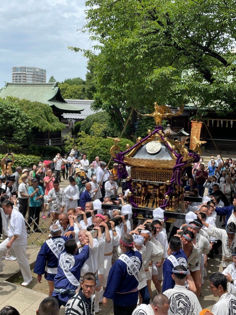 They carried it all through the neighbourhood, squeezing down tight alleyways to swing the mikoshi and bring luck to the houses nearby.