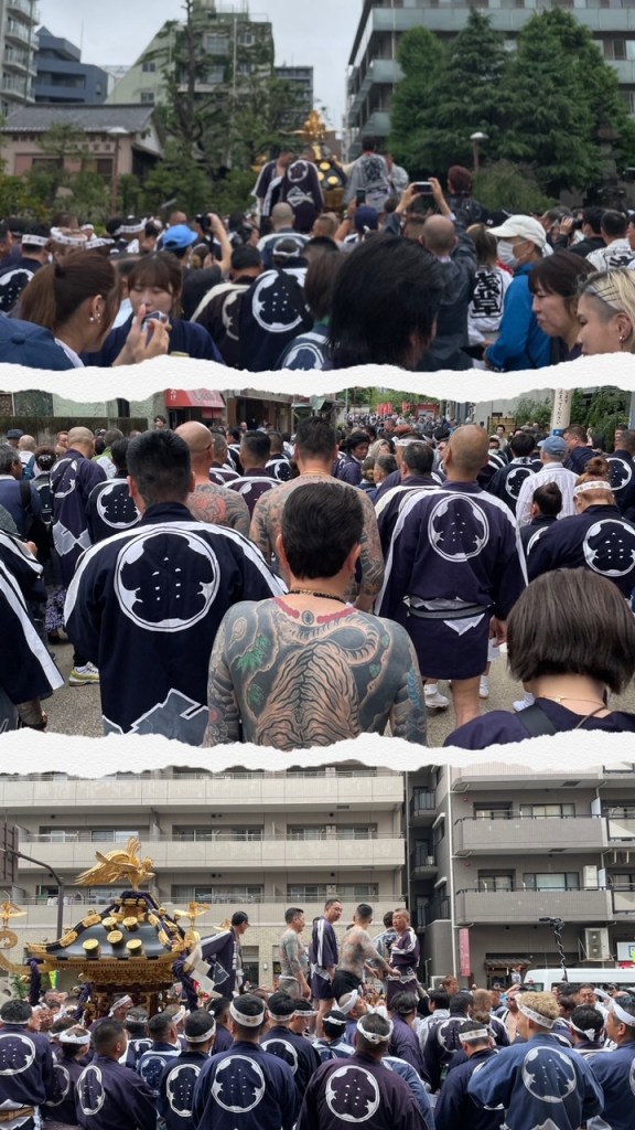 Festival season is currently in full swing, and we made our way to three matsuris during May and and June. The first was the Sanja Matsuri, considered one of the wildest and largest in Japan. This is mainly because of the Yakuza show of strength, where one hundred men join forces to lift a mikoshi (portable shrine) that weighs over one tonne and parade it through the streets. It is one of the rare opportunities to see Yakuza members fully disrobed, showing their tattoos openly on the streets.
