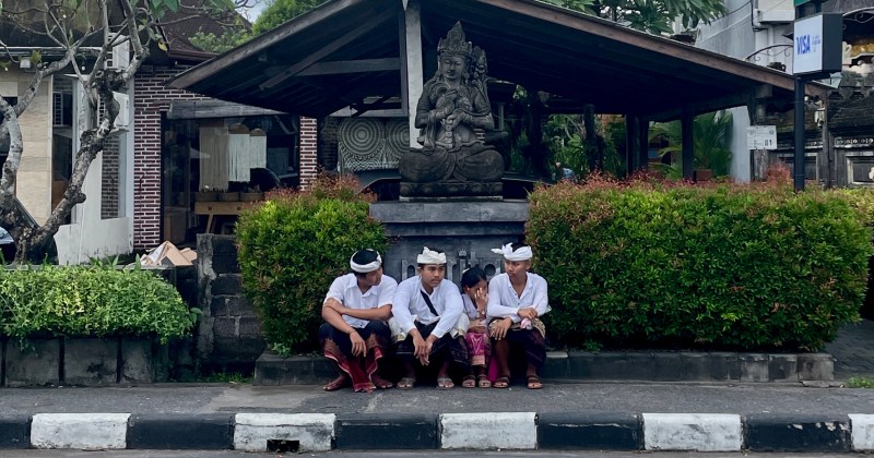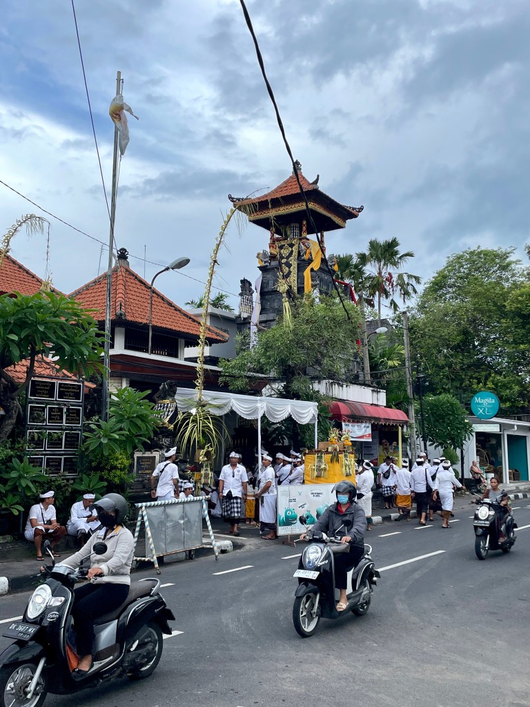 As morbid as it sounds, it’s not unusual to stumble across funeral ceremonies while travelling in SE Asia. Many are semi-public affairs, with local temples being used. Over the years, I have unwittingly wandered into a fair few, most notably in Denpasar, as well as in Nepal after the 2015 earthquake, where multiple bodies were being burned on funeral pyres down by the river. On this trip, we were cycling through Sanur when we heard the unmistakable sound of gamelan music in the distance. Coming closer, we could see that a funeral was happening in the town’s main temple.