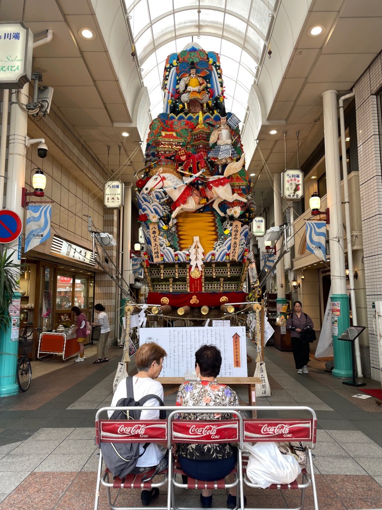 What we didn’t realise, was that during our visit Fukuoka was in full preparation for the Hakata Gion Yamakasa, the most eagerly awaited yearly festival in the city. Massive decorative floats (weighing up to one ton) were scattered throughout the city for people to look at. These floats were then carried through the streets in spectacular fashion, something we were lucky enough to see, and that I have shared at the end of this post.