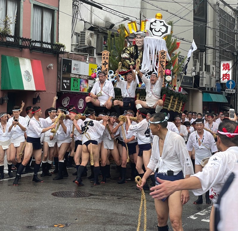 After Yamanaka, Mrs IKIMASHO and I flew down to Fukuoka where I used to live 20 years ago. What I didn’t expect was that our visit would coincide with the practice runs of the Yamakasa Festival where huge floats weighing one tonne are dragged through the streets. The floats don’t have wheels and so water is thrown about to reduce friction between the float and the road surface (and to cool down the participants). It was a chaotic and cool experience and one I had never seen before. You can see a video of it here: https://www.facebook.com/watch/?v=1176364590178054
