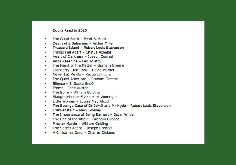 My own book list from 2025. Once again I read 22 (third year in a row with that number, strangely.)