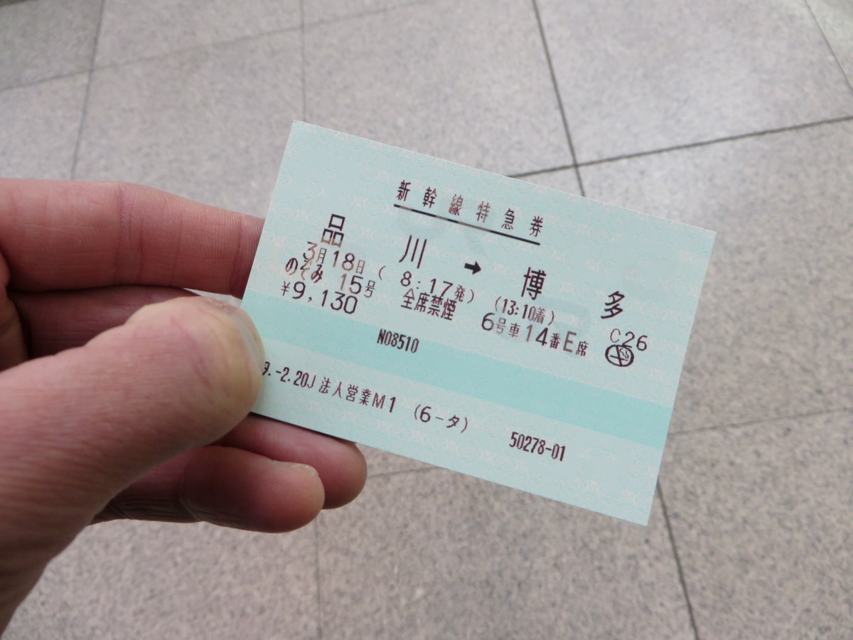 My ticket from Tokyo (Shinagawa) to Fukuoka (Hakata)
